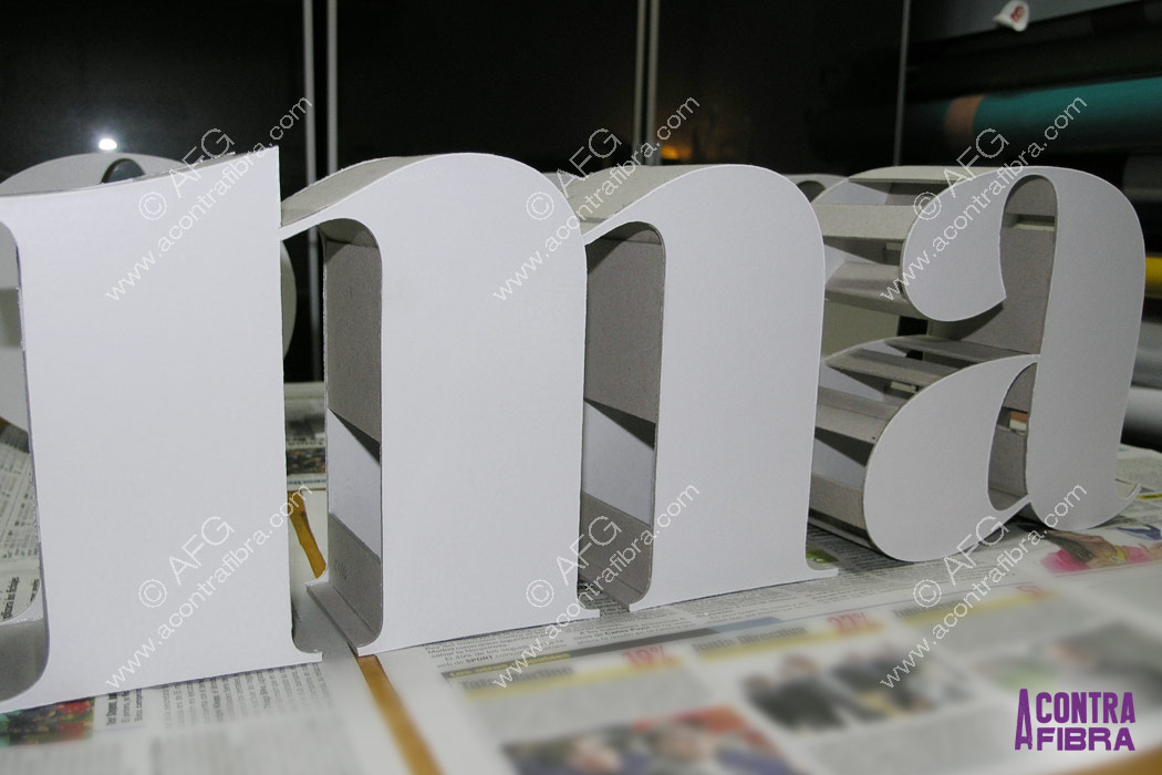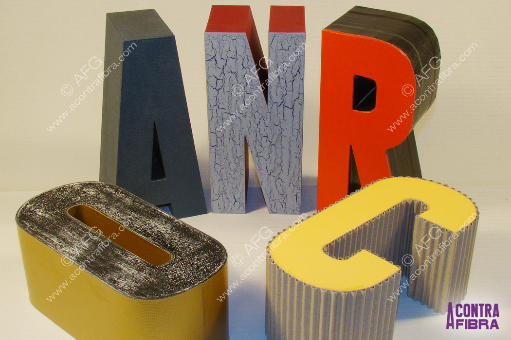 Fabricadas en cartón con diferentes materiales de cubrimiento. Este tipo de propuestas son ideales para decoración, escaparatismo, eventos y señalética. Proyectos a medida con multitud de acabados.