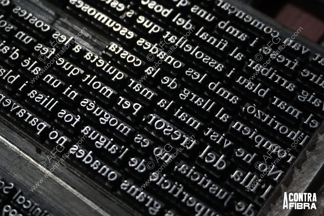 El texto reproduce una cita de la novela La isla del tesoro de Robert Louis Stevenson. La composición se hizo con tipos móviles de plomo originales a tres tintas.